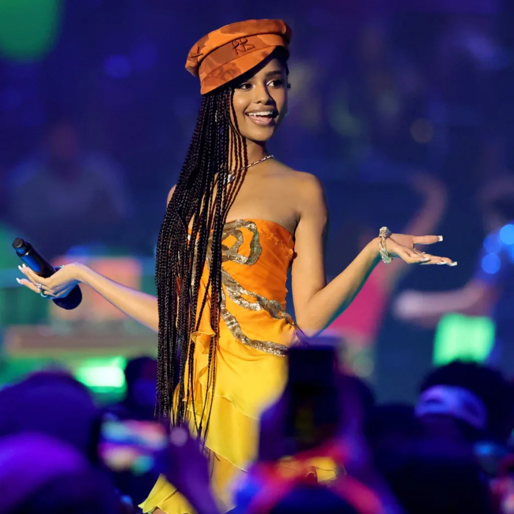 Tyla hosted the show, which aired live on Saturday, June 21 at 8 p.m. (ET/PT) from Barker Hangar in Santa Monica, Calif. Tyla led a dance celebration featuring the hottest songs of the summer and closed out the show with a centerstage sliming (the show’s most popular gimmick). She also won favorite global music star.