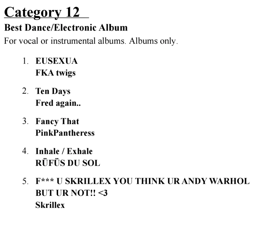 Best Dance/Electronic Album
