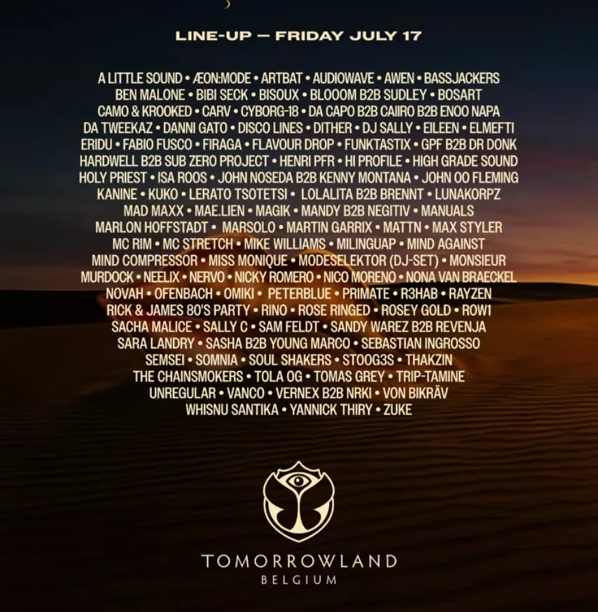 Tomorrowland has announced the lineup for its flagship edition in Boom, Belgium, this summer.