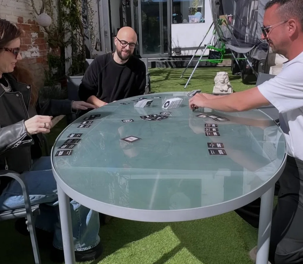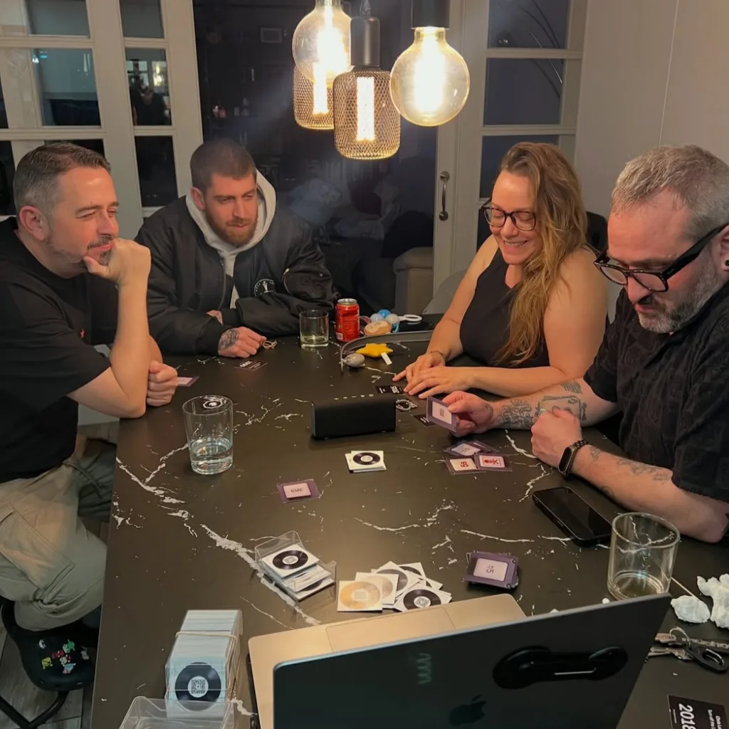 Players must place tracks on a chronological timeline using audio clips and hint cards, while opponents try to mute hints, steal cards and trigger “panic timers” to disrupt play. One example features Daft Punk, described as ‘the French duo who always performed wearing high-tech helmets rather than showing their faces’.